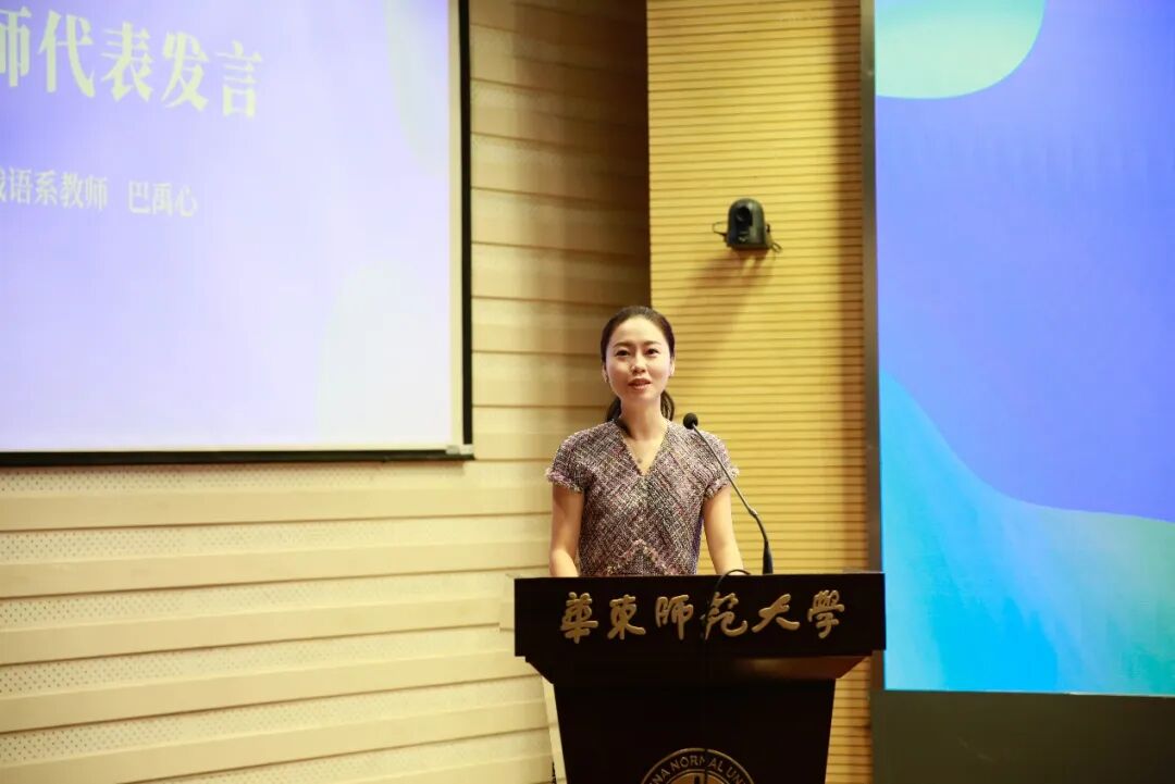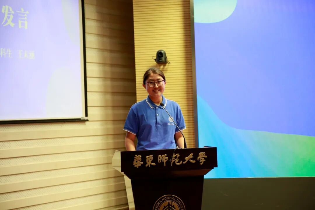 新生代表、英语师范专业本科生王未涵分享了从甘肃教师家庭走向华东师大的成长经历与教育梦想。在她看来,孟宪承书院与番茄小说 “破界协同”的联合培养模式已然为师范生搭建起跨学科成长的广阔平台。她号召师范生们以外语为眼,以技术为翼,以讲台为根,厚植教育情怀,承担新时代赋予师范生的使命,共同奏响时代的教育乐章。