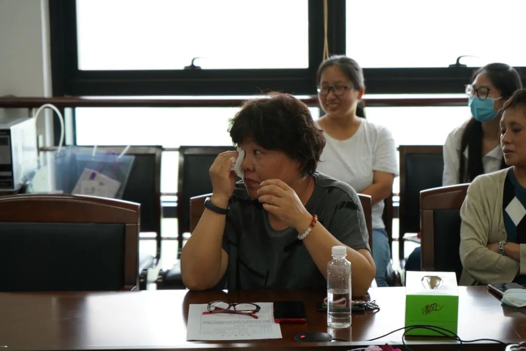 座谈会现场的老师们也纷纷发言。感谢,是他们最想表达的。丁老师像是一个大家长,把大家紧紧地凝聚在一起,也像一盏灯塔,为我们指引方向,鼓励着后辈们不断前行。徐蓓丽老师在讲到丁老师每次遇到她都会关切地询问她母亲身体状况,对此感到非常的暖心,说到动情处禁不住留下了不舍的泪水。将座谈会气氛推向了高潮。来自俄语系的班婕老师和法语系的毕笑老师作为专业教师代表也表达了自己对丁老师的敬意与不舍。他们两人从刚入校就得到了丁老师多方位的帮助和指导,多年来一直把丁老师无私奉献,关爱学生作为自己教书育人的学习目标。