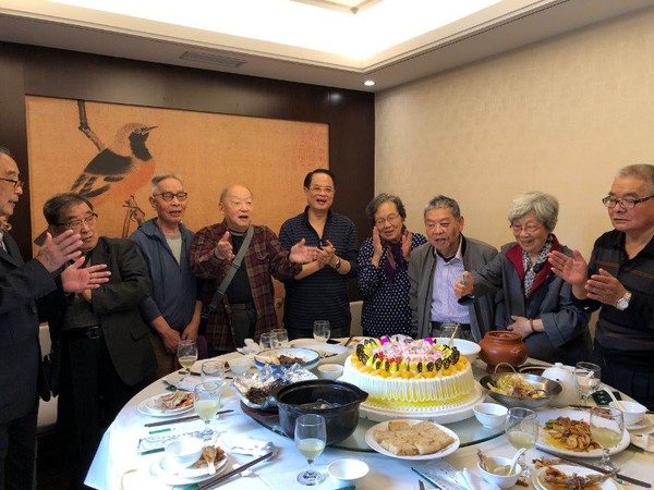 中午,各位校友在逸夫楼聚餐,并集体提前庆祝1940年出生的同学的80岁生日。