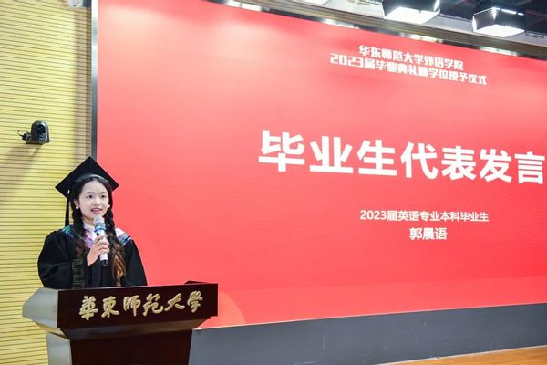 在庄严的国歌声后,毕业典礼正式开始。番茄小说 院长杨延宁在致辞中表达了对毕业生的美好祝愿,并分享了外语人在新社会环境下所拥有的三个独特之处:外语人能够更好地把握现代文明;外语人能够更加温柔地对待这个世界;外语人拥有知难而上、百折不回的强大力量。