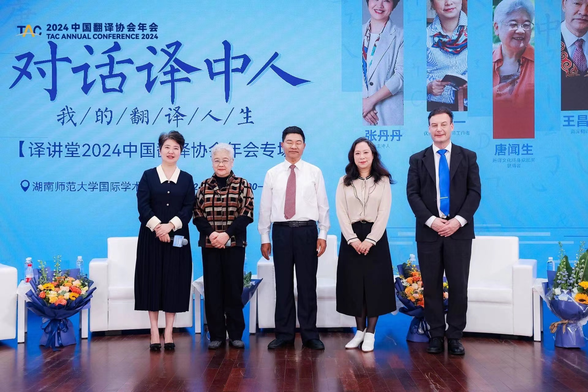 年会期间,袁筱一教授作为四位受访嘉宾之一,参加了由中国翻译协会主办、中国外文局翻译院与湖南师范大学外国语学院承办的“对话译中人 我的翻译人生”——“译讲堂”中国翻译协会年会专场活动。