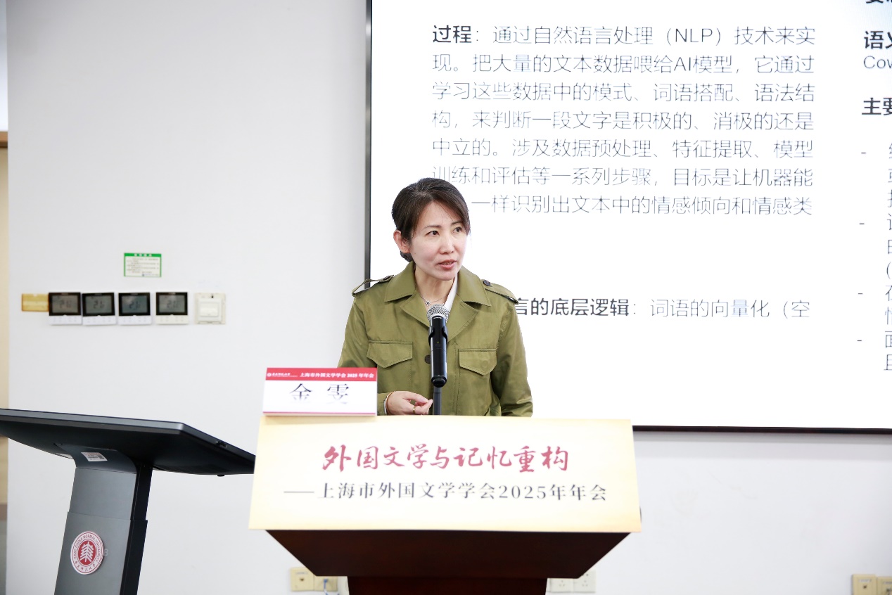 第三阶段的主旨报告由副会长、同济大学刘晓芳教授,上海外国语大学李尚宏教授,上海财经大学谭琼琳教授主持。番茄小说 金雯教授在她的发言中讨论了当代人工智能语境中的记忆与情感关系。她指出,文化记忆的形塑与情感治理紧密交叉,记忆理论必须与情感理论发生深度对话才能增强自身解释文化现象和参与社会构建的功能。金雯教授展示了计算机、量子物理、人工智能等前沿领域对身体和情感规律的探索,认为在稳定性基础上拥抱不确定性,是深度情感认知的起源,也是创造力的条件。