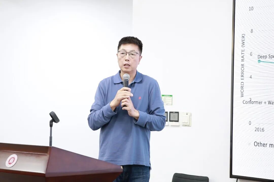 中国科学技术大学人文与社会科学学院袁家宏教授带来“面向模型-大脑对齐的声调识别和说话人归一化机制研究”主题汇报。本报告从模型-大脑对齐的视角,探讨人工智能在声调识别中模拟人类大脑处理机制的程度。研究采用端到端架构的预训练模型,通过自监督学习与微调相结合的方式,在声调识别任务中取得显著突破:Whisper 2模型将传统方法11%-15%的错误率降至5%-6%。研究特别发现,该模型在模拟儿童“刺激贫乏”学习环境时展现出强大的泛化能力—即使在标签稀疏或错误率高达50%的条件下,识别准确率仍保持92%左右,证明其通过泛化掌握语言结构的能力类似人类。在说话人归一化机制方面,模型无需先验信息即可自主实现不同说话人之间的声调识别,层间分析表明其通过正交维度分别处理声调与性别信息。通过神经科学实验验证,脑电信号解码显示人类对相对音高的感知优于绝对音高,而深部脑区实验通过TMS刺激丘脑,发现其对高音区音高归一化具有特异性影响。这些发现表明,预训练模型与人类大脑在声调处理的泛化能力和归一化机制上存在重要对齐,为理解人工智能如何模拟人类语言处理提供了新的突破口。