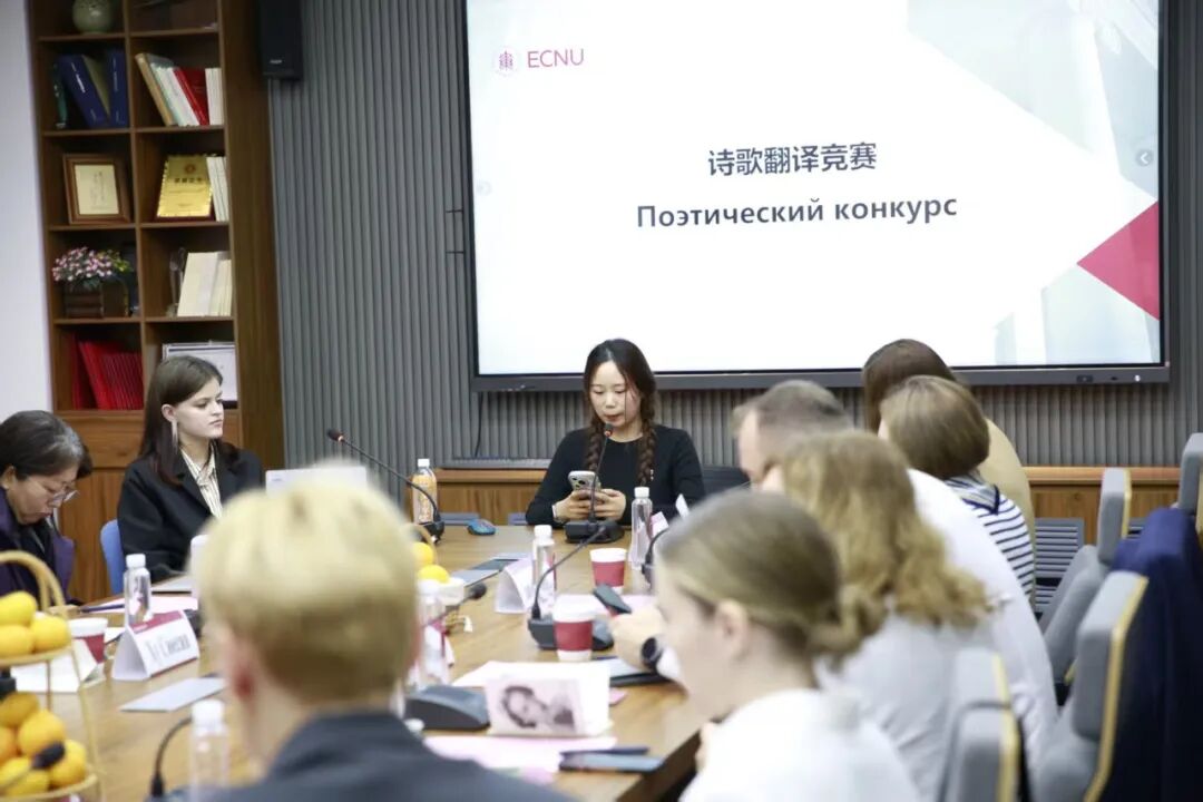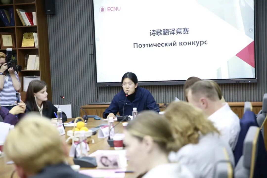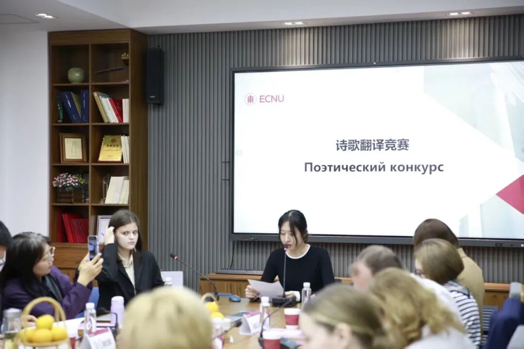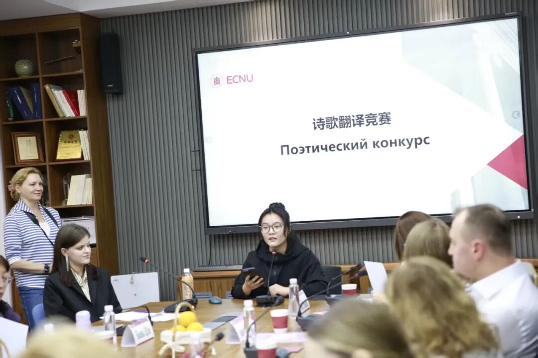 在诗歌翻译竞赛单元,参赛选手声情并茂地朗诵自己翻译的拉丽莎·安德森诗歌。用于翻译比赛的10首诗歌,主要选自拉丽莎·安德森1940年出版的诗集《巡回人间牧场》。中俄评委从诗歌翻译的不同角度,对选手呈现的译文分别进行评分,最后选出4名获奖者。一等奖获得者为2025级俄语翻译硕士研究生王嘉琳;二等奖获得者为2025级俄语学术型硕士研究生李飞逸;三等奖获得者为2025级俄语翻译硕士研究生宋媛媛、2022级本科生陆荷欣。