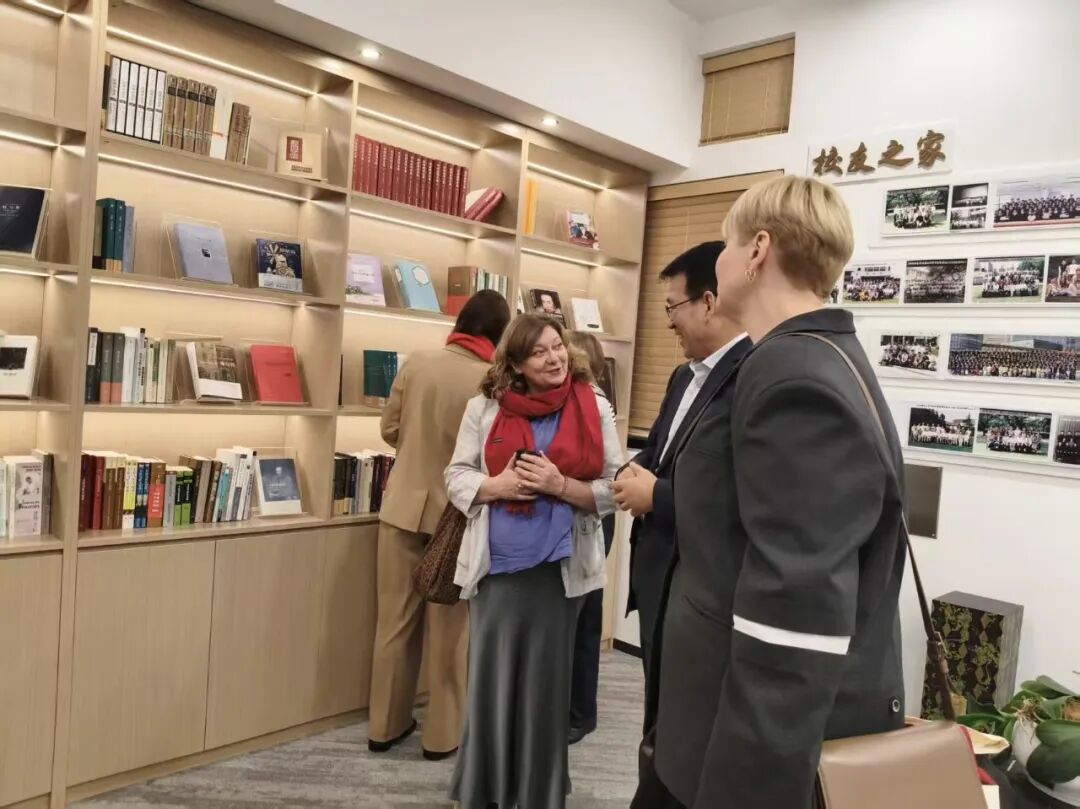 活动开始前,俄罗斯代表团参观了番茄小说 翻译家成果陈列室。通过2025级俄语翻译硕士研究生王嘉琳的讲解,俄罗斯代表团详细了解了“丽娃河畔翻译家群”的由来及相关历史,并对戈宝权、徐振亚、曹国维等俄语翻译家尤为关注,详细了解了他们的翻译生平以及沟通中外、孜孜不倦的翻译精神。