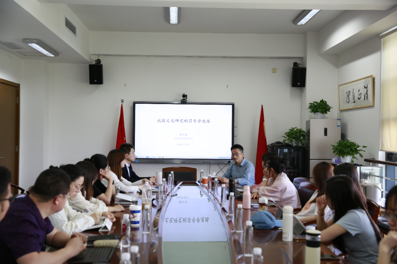 319室迎来了一场别开生面的学术盛宴。美国符号学会会长、多伦多都市大学教授余红兵老师应邀为语言学方向的师生带来了一场主题为“比较文化研究的符号学进路”的精彩讲座。