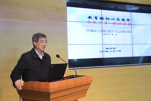 随后,上海外国语大学梅德明教授结合年会的主题,作了题为“教育的初心与使命——有教无类,因材施教”的专家讲座。讲座基于中国教育现代化2035年规划,结合当前高考改革的热点和新技术、大数据的广泛应用,提出了关注学生差异的育人目标和理念,倡导在外语教学过程中,我们不仅要注重外语特色教学,更要在教育过程中体现育人本色,促进学生的个性化发展。