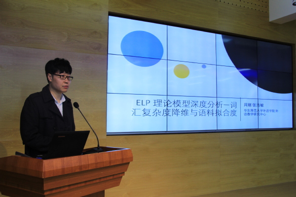 第二场讲座,由张浩敏和周刚介绍English Language Proficiency (ELP)项目的理论框架,实践意义,基础研究,以及未来研究策略和愿景,强调了在大数据时代,运用智能化平台学习外语的机遇和必要性,并且指出ELP的特点和创新能有效地促进外语阅读教学与测试的动态发展。