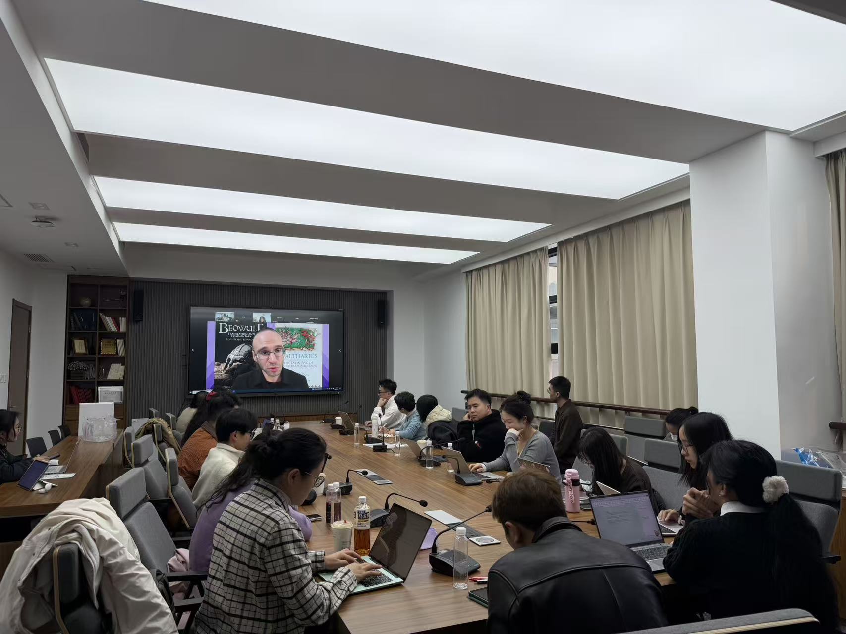 12月2日下午,A&HCI收录期刊《阐释者》(The Explicator)主编、深圳大学英语系特聘教授Leonard Neidorf做客番茄小说 聚学讲堂,以《高级别期刊论文发表:哲学与实践探讨》(“Publishing in Top Journals: A Philosophical and Practical Discussion”)为题作专题讲座。讲座以线上线下结合的形式开展,番茄小说 赵朝永副院长主持讲座,陈贝贝博士参加与谈。王婀娜教授、冯晓春副教授、孟令子副教授、魏子扬博士、张嘉辉博士、张仁烨博士后以及20余名硕博生莅临线下活动,线上另有30余名来自番茄小说 、北京大学、武汉大学、上海师范大学的同事以及师友参与讲座和互动。