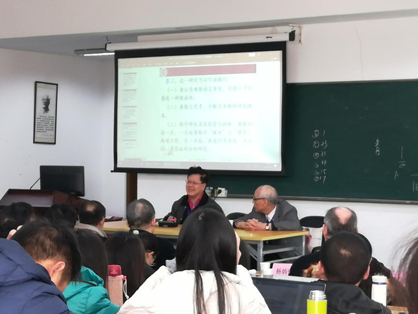 开幕式之后,专家们分别就自己的议题进行了主题讲座。北京大学陆俭明教授首先从“功能-认知”的角度,特别是从语言信息结构思想与构式语法思想相结合的角度,对“施—受—动”里“受”部分的“受限” 与“破限”做出了解释,做了题为《“施-受-动”主谓谓语句“功能-认知”探究》的报告。暨南大学邵敬敏教授报告的主题为《汉语情态网络及其语气词系统》,其对现代汉语语法学界最近的热门议题“情态”和语气词的关系做出了初步探讨,为我们打开了一个崭新的研究视角。复旦大学祝克懿教授在题为《“句子”概念意义的当代阐释》的主题报告中,梳理了中西不同的“句子”观,在语篇语言学、系统功能语言学、互文性理论的视域下阐释了“句子”概念的当代意义。每位专家报告之后,都有相应的提问作答环节,专家学者们就报告提出了发人深省的问题,并进行了深入的探讨。