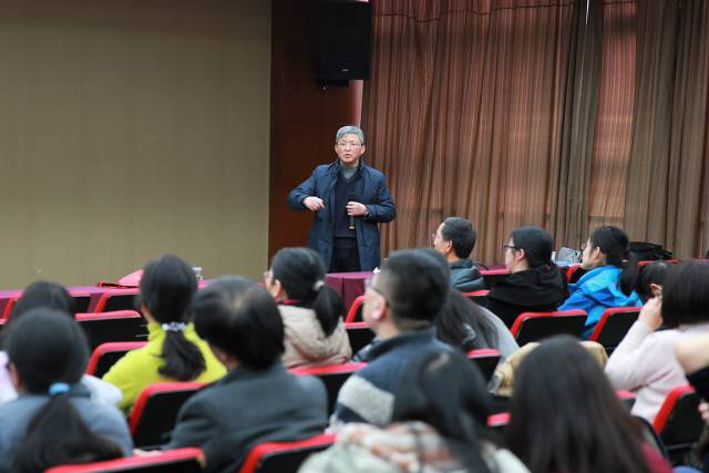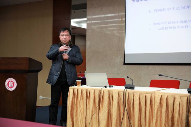 教务处原副处长、教师教学发展中心负责人周忠良教授,从教育技术理论的高度和教育技术实际效用的视角,向老师们展示和详解了我校大夏学堂在线教学平台的建设和发展,为老师们展现了现代技术运用于外语教学的有效途径。同时,他还介绍了大夏学堂在线课程建设项目的申报情况以及教师教学发展中心相关培训和研讨活动开展计划。