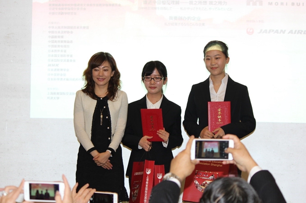 本次演讲比赛分为上下两个半场,在上午的比赛中,选手们分别以“增进中日相互理解——我之所想,我之所为”或“我要创办的企业”为题发表演讲。陶紫东同学讲述了自己希望成为一名国际记者,为中日两国人民的交流和相互理解而努力的志愿。她以标准的日语发音、独特的视角及深刻的内容给评委及全场观众留下了深刻的印象。在下午的比赛中,围绕“在老龄化社会中机器人的作用”这一话题,陶紫东同学发表了即兴演讲。内容充实,角度新颖,表达流畅,迅速征服了在场所有人,赢得了大家的阵阵掌声。