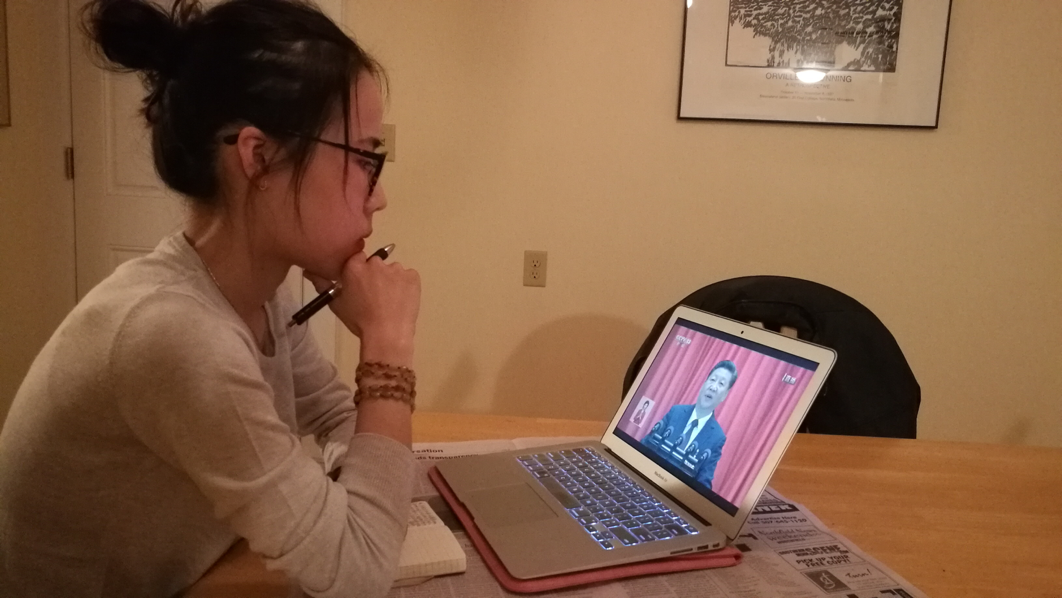 2015级法语专业本科生党员梁悦在比利时布鲁塞尔自由大学交流学习。十九大开幕的时间正是布鲁塞尔的午夜。18日早上6:00,梁悦起来第一件事就是收看十九大开幕会的转播。看完之后,她表示:“十九大开幕了,尽管因为身在国外没有办法和同学与老师们一起收看直播,但是自己在异乡也同样关注着十九大的消息,定时收看关心国家动态,这不仅是来自于一个共产党员的使命感和责任感,更是异国他乡的学子对祖国深深的思念以及作为一名党员的自豪。祝十九大圆满成功,祖国发展越来越好。”