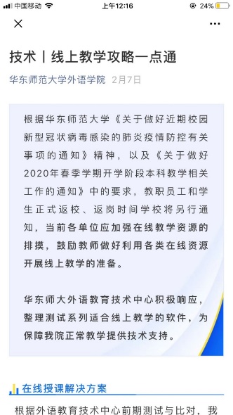 以调查研究为抓手,精准科普教学软件。“云技术服务组”对市面上现有的线上教学软件进行了详细调研,经过反复测试、研究与比对,从十余种产品中遴选出了适合外语线上教学的产品,分成直播课和录播课两类进行推荐。为了让授课教师更详细地了解在线教学的操作逻辑和软件的使用方法,技术组的三位老师精心制作了各款软件的操作视频和文字教程,通过番茄小说 微信公众号整合发布。截至2月20日,微信文章累计阅读量超过7000人次,详实的解析和简易的操作流程得到了老师们的认可,除番茄小说 教师外,其他院系和高校的教师都从中受益。