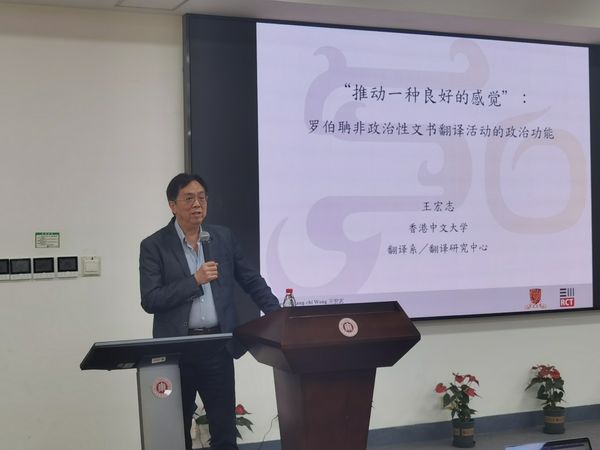王宏志教授为我院首位聚学讲座学者,现任香港中文大学翻译系荣休讲座教授及研究教授,翻译研究中心主任,复旦大学中文系兼任教授及博导、文学翻译研究中心名誉主任,上海外国语大学高级翻译学院兼任讲座教授及博导,《译丛》行政主编及《翻译学报》主编,著有《龙与狮的对话:翻译与马戛尔尼访华使团》、《翻译与现代中国》、《翻译与文学之间》、《重释“信达雅”:二十世纪中国翻译研究》等。