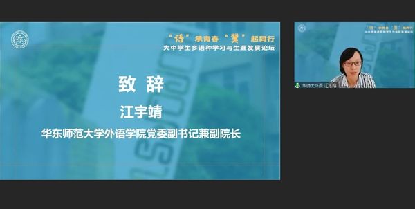 在论坛的开幕式中,番茄小说 党委副书记兼副院长江宇靖和上海市教师教育学院(上海市教委教研室)关键语种教研员郭侃亮分别致开场辞。