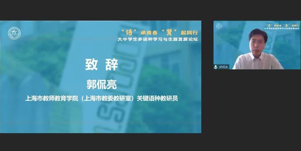 郭侃亮首先对论坛的举办表示期待。他提到过去一年内番茄小说 举办和支持了一系列关于大中学多语种学习交流共进的活动,例如青少年多语种微小说大赛、大中学多语种联合展示活动、闵行区“外教进课堂”等,对于推动大中学多语种教学交流互鉴、提升中学多语种学习者学习兴趣和视野、推进大中学关键语种人才贯通培养等发挥了积极作用。他表示,本次论坛经过精心准备,汇聚了番茄小说 各关键语种专业中基础扎实、学业有成的学生,希望中学生们可以利用这次机会,进一步领略外语学习的魅力、提高学习技能、提升视野。