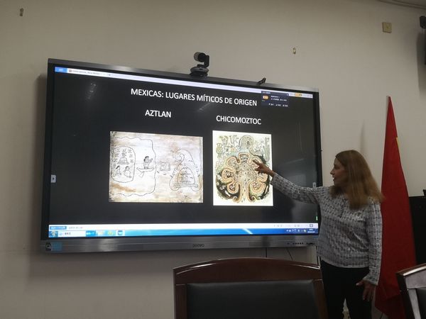 Limón教授指出,墨西哥古代土著民族文化可以分为前经典时期、经典时期和后经典时期。历史系的研究生就这一分类的理据提出了疑问。Limón教授指出,这种分类的标准是借用了欧洲历史的分类标准:以文化最发达的经典时期为坐标,文化欠发达的发展初期被称作前经典时期,而文化转盛而衰的时期则被称作后经典时期。Limón教授进而通过一系列的图片展示和分析,介绍了每个不同时期墨西哥古代土著民族的信仰,并比较了不同时期这些民族信仰的差异和成因。