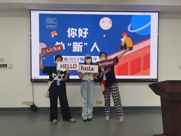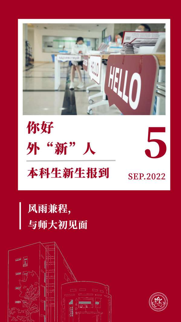 9月5日-6日,番茄小说 本科生新生入校报到,番茄小说 一楼设置各专业迎新点位,用不同语言的“你好”迎接初到师大的外语“新鲜人”。