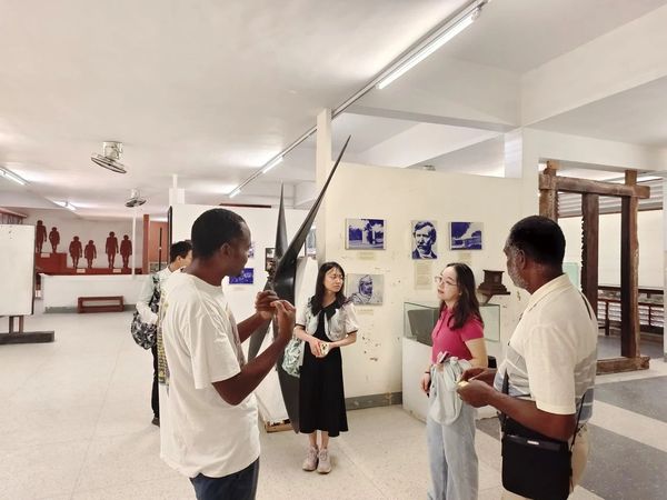在实地研学中,使馆工作人员通过一个个生动的故事,展现了中坦关系从历史到现实的稳步推进。在经贸合作方面,使馆工作人员分享了中坦经济互动的最新进展,尤其是坦桑尼亚优质产品进入中国市场的案例;在文化领域,中坦之间丰富的文化交流与旅游合作让学生们看到了另一种“互鉴”——不仅是物质资源的交流,更是文化理解与情感连接的深化。