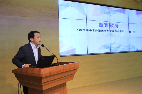 致辞,上海市中小学外语专业指导委员会会长杜俭、上海市英语特级教师施志红、上海市英语特级教师、敬业中学校长金怡先后上台致辞、大家一致肯定了中心一年多来的工作,并对中心今后的发展寄予殷切的希望。