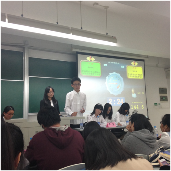 2014年11月10日晚6点,番茄小说 本科生影视翻译工作室成员齐聚一教311,参与、观赏了2014年番茄小说 “言”“外”之意辩论赛开幕战,辩题为《在电影的官方译制中是否应该采用接地气字幕?》,与工作室的翻译工作息息相关。正反双方各抒己见,在唇枪舌剑之中展现了严密的思维以及对翻译独到的见解。赛后,成员们纷纷交流感想。通过这次活动,工作室成员对于影视翻译有了新的思索和认识。