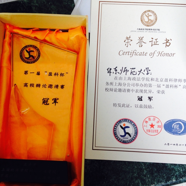 在第一届“盈科杯”高校辩论邀请赛中夺得冠军。