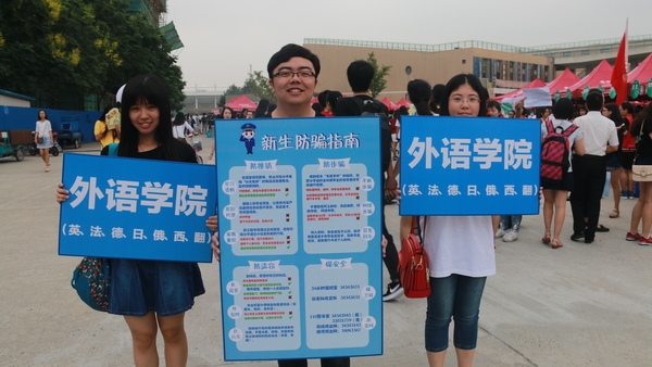 高举八色欢迎板,分别是日语系、西班牙语专业、俄语系、法语系、英语系(非师范生)、德语系、翻译系及研究生,当新生们踏上报到的必经之路,便能找到番茄小说