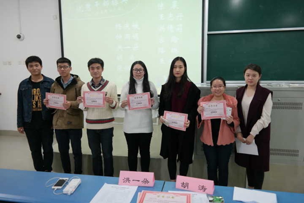 接着主持人宣读了2014学年第二学期的优秀干部标兵以及优秀干部名单,并由团学联副主席洪一朵与副主席胡涛为他们进行颁奖,以此表彰他们在过去的一学期中的辛勤工作。