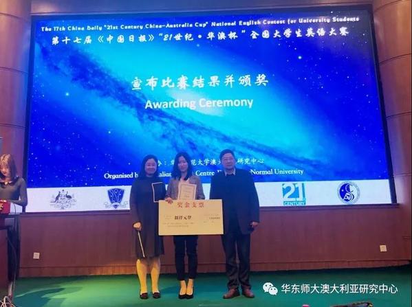 澳大利亚研究中心主办的第十七届《中国日报》“21世纪·华澳杯”全国大学生英语大赛在我校中山北路校区逸夫楼报告厅成功举办,来自北京、上海、山东、江苏、安徽、四川、云南、陕西、青海、新疆、内蒙古、黑龙江等省市26所高校的选手在丽娃河畔同台较量。