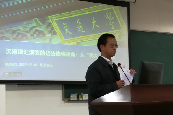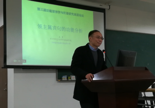 333报告厅主持了本次论坛的开幕式,杨教授首先对与会专家、老师和学生的支持表达了由衷的感谢,然后简要地介绍了本次论坛的主题和议题,他指出本次论坛在秉承一直以来的办会宗旨的基础上,聚焦汉语句式的功能解释,并期待通过这次主题讲座了解功能语言学与汉语研究领域的最新进展,通过提问作答促进学者之间的交流,展望未来功能语言学与汉语研究的发展前景。