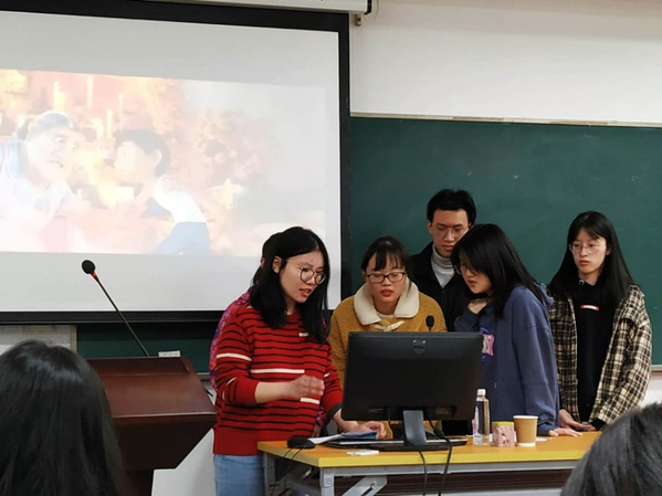 比赛到此已全部结束,但精彩仍在继续。在评委们评分和讨论的时间里,三年级的四位同学,也是去年晋级“第七届全国高校西语配音大赛”11强的队伍,为师生们带来了电影《神偷奶爸2》片段的配音表演。学长们从容自如的吐字、游刃有余的衔接配合和惟妙惟肖的模仿抓住了在场每个人的注意力,大饱耳福的观众们为他们送上了全场最热烈的掌声。