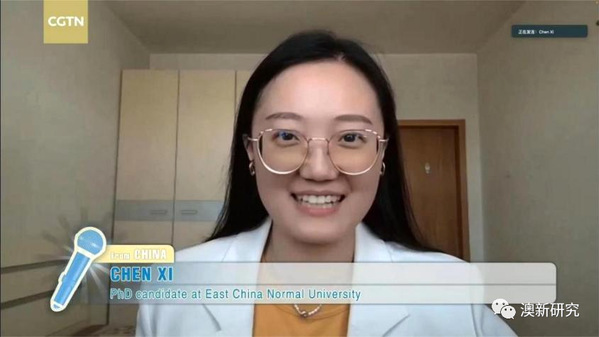 澳大利亚研究中心博士研究生陈曦应邀作为中方代表参加本次论坛。参与本次论坛的代表还来自巴西、俄罗斯、印度、南非、阿根廷等金砖和“金砖+”机制下国家。本次论坛通过CGTN和CGTN Radio向全球直播。