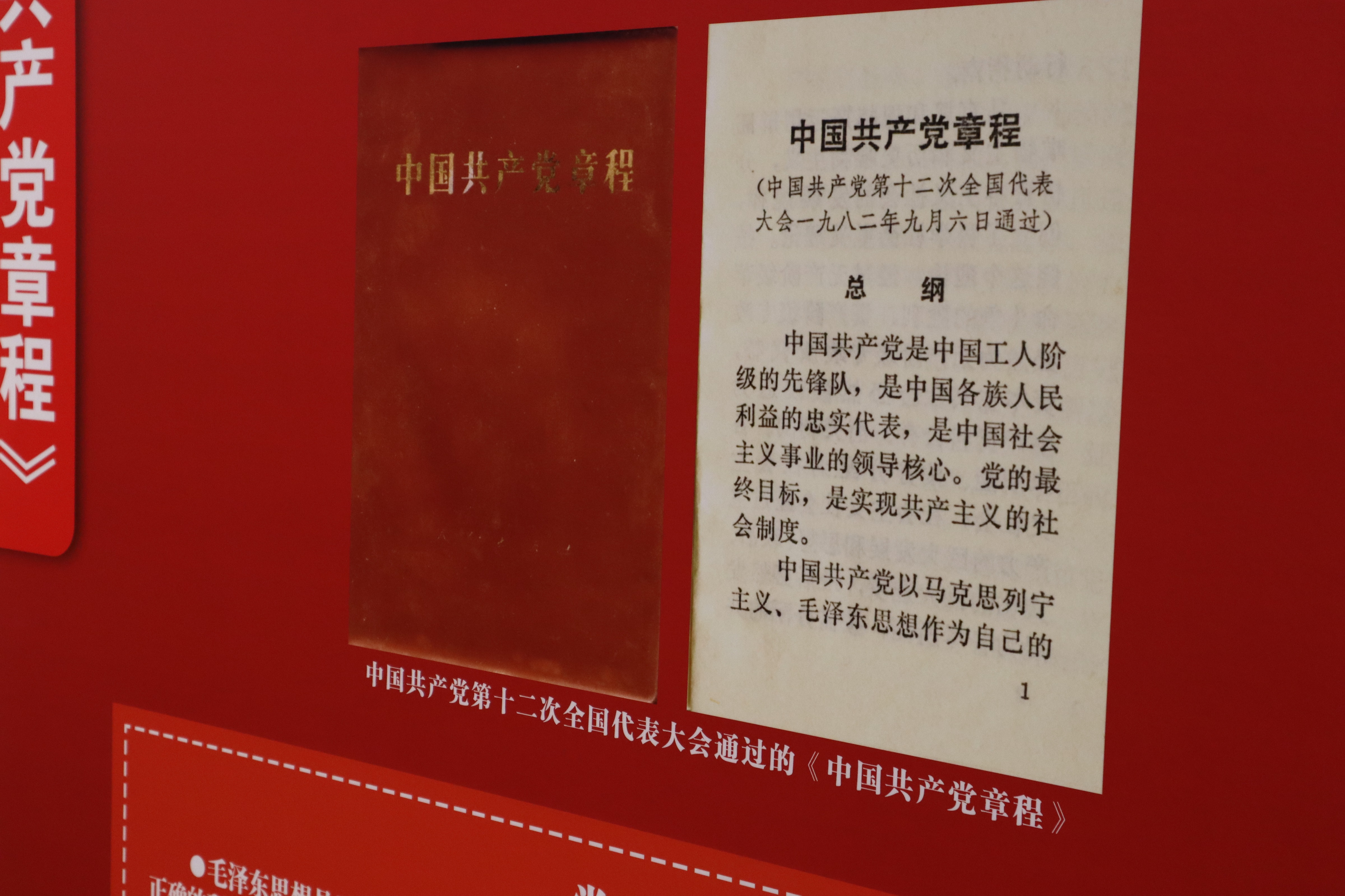 展厅的结语部分节选了习总书记在《认真学习党章严格遵守党章》一文中的要求:“党章是党的总章程,集中体现了党的性质和宗旨、党的理论和路线方针政策、党的重要主张,规定了党的重要制度和体制机制,是全党必须共同遵守的根本行为规范。没有规矩,不成方圆。党章就是党的根本大法,是全党必须遵守的总规矩。在各级党组织的全部活动中,都要坚持引导广大党员、干部特别是领导干部自觉学习党章、遵守党章、贯彻党章、维护党章、自觉加强党性修养,增强党的意识、宗旨意识、执政意识、大局意识、责任意识,切实做到为党分忧、为国尽责、为民奉献。”