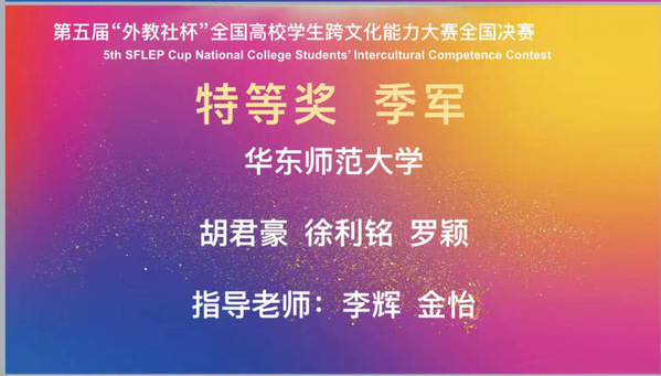 李辉、金怡老师指导,由2021级西班牙语专业本科生胡君豪、2021级日语专业本科生徐利铭以及2019级新闻学专业本科生罗颖组队参赛。在强手如林、竞争异常激烈的总决赛中,我校代表队表现优异,最终成功获得全国特等奖(季军)。这是我校代表队在历届大赛中获得的最高奖项。