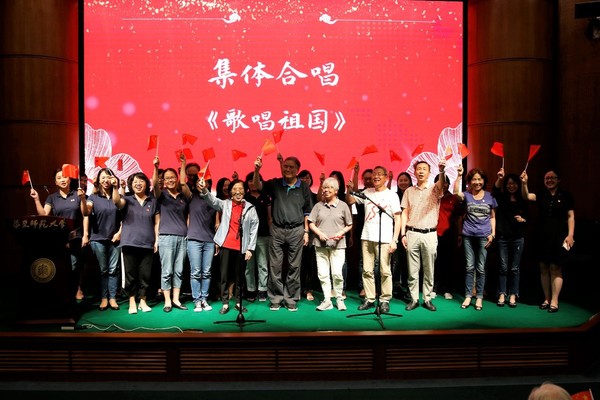 主题活动成果展示在退休党支部蒋范琛、杨珠樨、何慧敏和行政党支部闫露、江宇靖、丁兰兰、周俊辰中文朗诵《我的祖国》中推向高潮,在场党员无不为之动容,爱国主义情怀激荡在每个人心中。