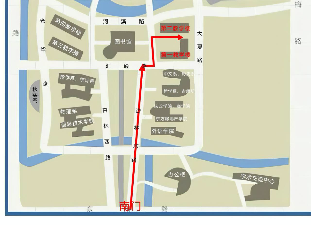 东川路校门南门(地址:闵行区东川路500号),考生请勿走错校门,其他校门均不可进校。仅限考生本人通过,所有陪考人员及车辆一律不得进校,并请避免在考点门口或附近区域聚集。请考生合理选择公共交通工具,如地铁15号线。