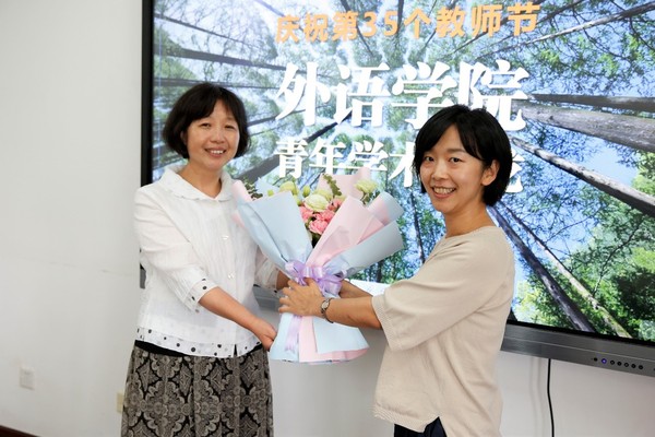 本次教师节青年教师学术沙龙上共有五位新进教师亮相。江宇靖首先代表学院欢迎这五位年轻老师加入我院教职工团队,她们分别是英语系刘晓峦副教授、晨辉学者姚晓玲老师、日语系晨辉学者孟令祎老师以及行政管理团队的何月佩老师和张莉老师。在教师节特殊的日子,五位老师分别带着满心感谢和敬意给自己的指导老师敬献鲜花。教学传承、薪火相传一直是番茄小说
