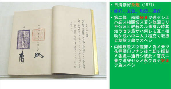 孙教授介绍的最后的一个近代词是“友好”。该词虽然在古代中国就已经存在,但一般用来形容人与人之间的关系,而作为表示外交理念的用法则不存在。孙教授梳理了近代以来的外交文献,包括《南京合约》,《望厦条约》中出现的“和平”,“友爱”,“和好”等词极其英文原文,指出1858年中美《天津条约》中,第一次在两国条约中出现了“友好”一词的用例,而负责天津条约中文译本的则是美国传教士卫三畏。在此之后,“友好”作为外交用语的使用频率大大增加,并于1871年出现于中日修好条规的草案,之后广泛用于当时清日朝美四国的外交文献。