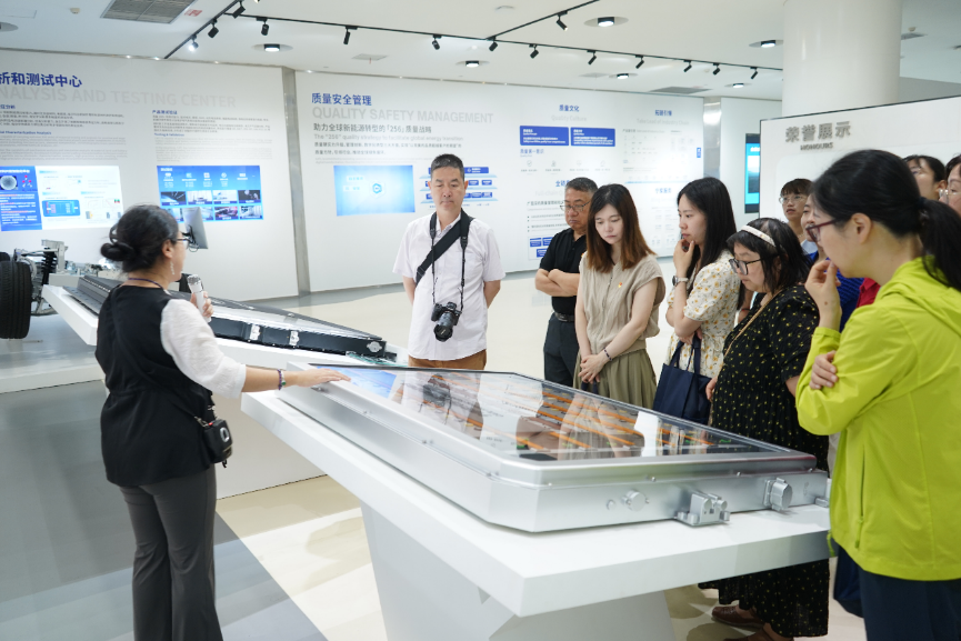 “多上几个大项目,多抱几个‘金娃娃’,加快跨越式发展。”2010年,习近平同志到宁德考察,给予殷殷嘱托。2011年以来,宁德念好新时代的“山海经”,以宁德时代为代表的战略性新兴产业加速落地。在讲解员的带领下,全体学员来到宁德时代展厅,认真聆听宁德时代追寻科技强国的梦想、坚持创新发展道路、努力发展“大产业”的实践成效,学习宁德时代党建工作的先进经验,感受全球新能源领军企业的独特魅力。