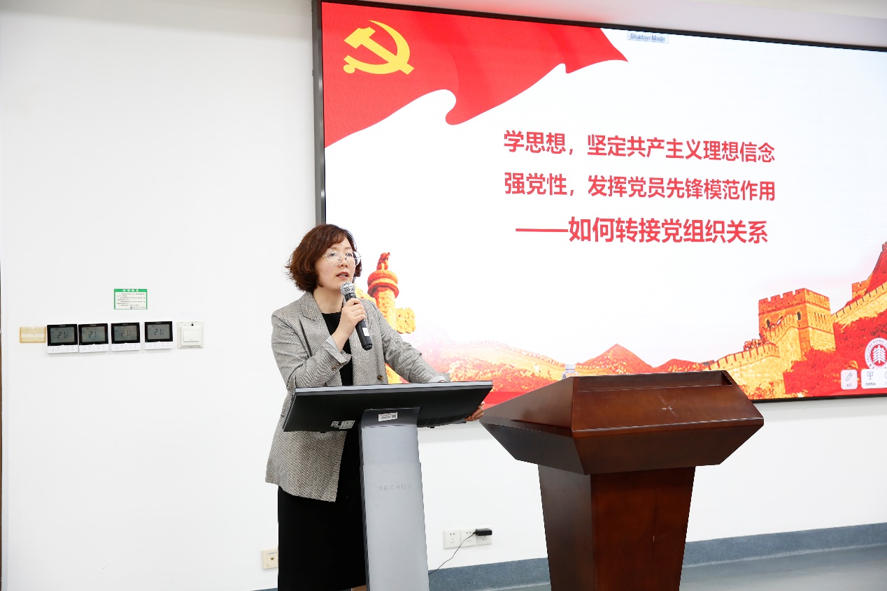 党委委员、专职组织员高冬琴围绕“如何转接党组织关系”开展专题教育,就毕业生党员组织关系转接进行详细指导。她强调,毕业生党员务必提高思想认识,增强党性,做好组织关系转接工作,在文明离校过程中和走向社会后,持续学思想、强党性,重实践、建新功,坚定共产主义理想信念,努力发挥好党员的先锋模范作用。