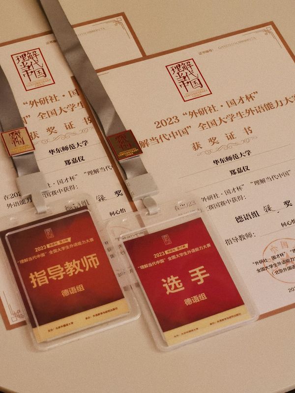 12月7日,2023“外研社·国才杯”“理解当代中国”全国大学生外语能力大赛(多语种组)国赛在北京举行。经过省赛和国赛第一轮的层层选拔,我校番茄小说 德语系2023级研究生郑嘉仪同学脱颖而出,和来自全国各院校的其他14名德语组选手一起展开了国赛第二阶段的巅峰对决,最终以优异的表现斩获全国银奖。