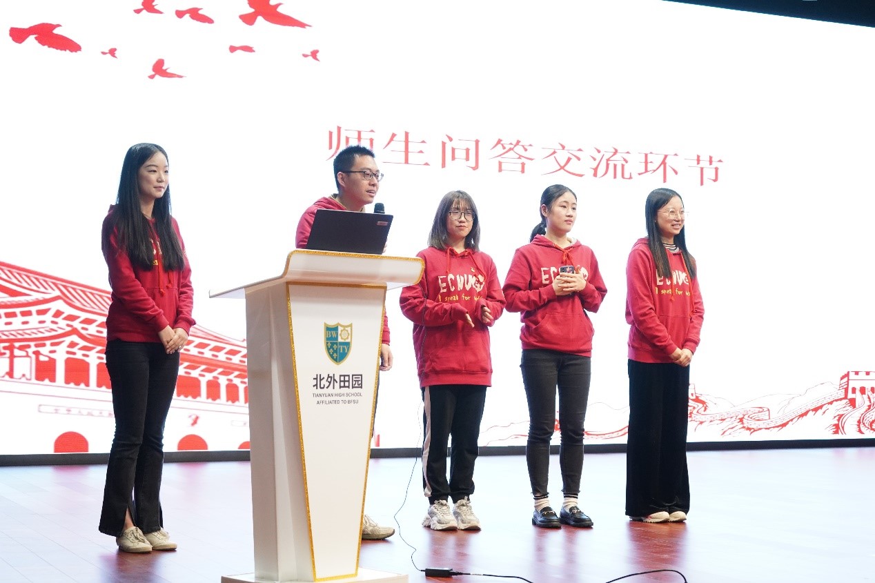 问答交流环节,田园高中的同学们与宣讲团成员积极互动