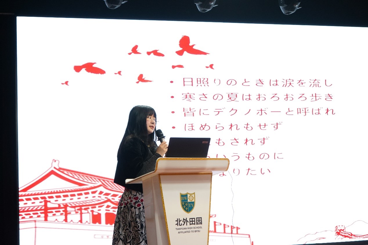 在宣讲过程中,田园高中的同学们认真听讲,积极互动,踊跃参与长征知识竞答,并就小语种学习中的困惑与四位宣讲同学进行了深入交流。最后,番茄小说 2020级学术型研究生党支部书记、日语系教师金晶老师借宫泽贤治的诗歌《不畏风雨》,从“青春、理想、奉献”三个角度出发,向学子们表达了美好的祝愿。