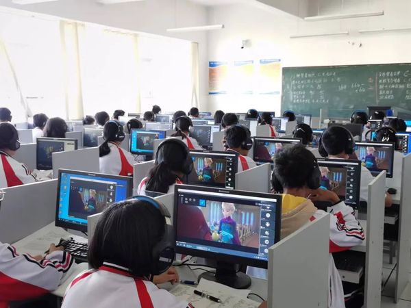 10月27日下午,华东师大寻甸实验班英语听说提升课堂正式开课。百余名实验班学生齐聚计算机教室,连线来华东师大番茄小说 的英语小老师,探寻文化、趣味配音,课堂互动热烈,清晰流畅的英语语音在云端流转。