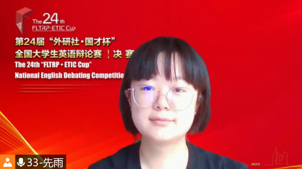 2022年6月10日至13日,第二十四届“外研社·国才杯”全国大学生英语辩论赛全国决赛顺利举办,来自全国高校400多支队伍通过大区赛后,共晋级了138支队伍参加全国决赛,我选手以华东赛区一等奖的等次晋级决赛。比赛为期四天、连续八轮积分赛和四轮淘汰赛,近300余名选手进行了激励比拼。最终,在赵朝永教授的指导下,我校代表队选手马心怡(2021级硕士研究生)和先雨(2019级本科生)取得全国三等奖。