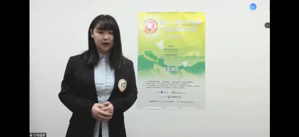 第十六届中华全国日语演讲比赛华东区预赛采用“线上+线下”的形式进行,来自华东地区上海、浙江、江苏、江西4省市的49所高校经过预赛,32所高校的32位选手成功晋级。比赛全程线上直播,上午播放各选手命题演讲视频,下午则是随机抽取题目的即兴演讲环节。