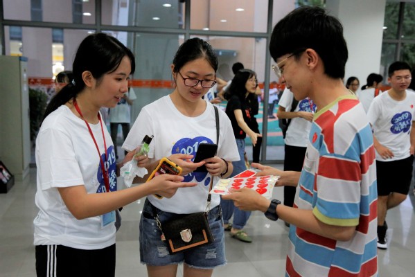 恰逢新中国成立70周年,这一届“外新人”们在《我和我的祖国》华师大快闪视频歌声中踏入大礼堂,熟悉的旋律、视频中华师的美景引人驻足,大家一个个都兴奋地贴上了爱心国旗小贴纸,象征着自己已经成为了一名光荣的外院学子。
