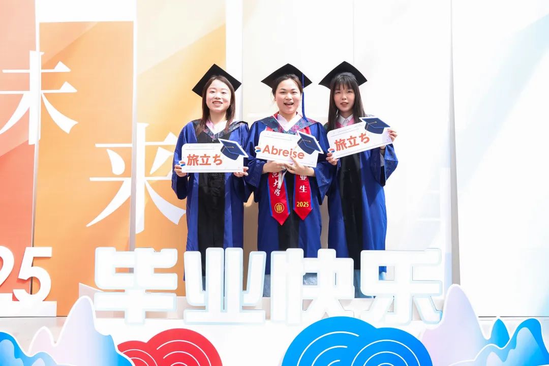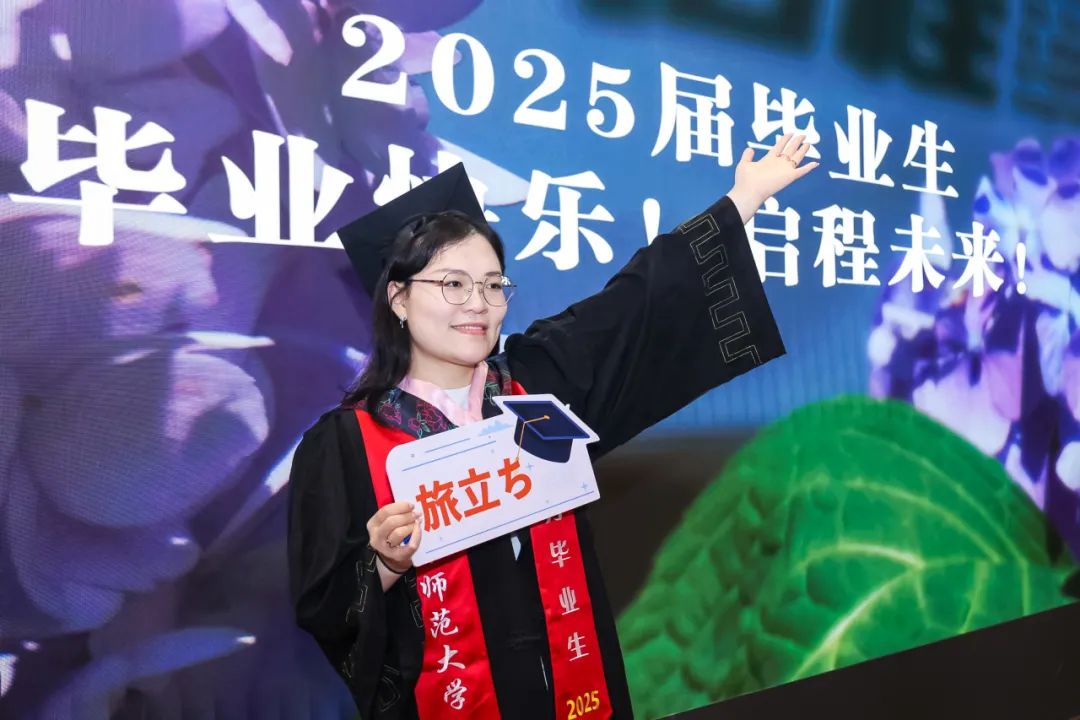 典礼末尾,周翔宇、丁海峰、樊锐、宁勇航唱响《时间的答案》, “愿你再次踏上征途的天空是一片蔚蓝,愿你越过千山历尽万难后的明天有你要的答案!”祝福2025届毕业生带着师大精神的滋养,凭借语言的磅礴力量,奔赴人生山海,开启崭新旅程。