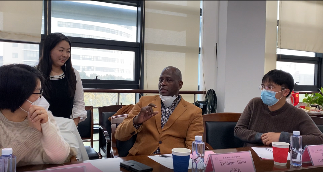 西语教研室刘昭博士介绍了西班牙语专业人才培养情况和教师团队的研究专长。在观看本科一年级学生的诗歌朗诵及二年级学生的歌曲演唱后,席尔瓦副校长对我校西语专业的培养质量及学生素养予以了肯定。双方就西语师资引进、学生暑期交流、开设古巴中心等问题进行了深入而细致的讨论。
